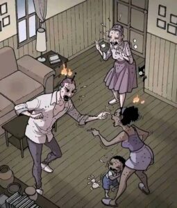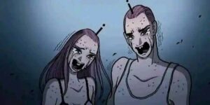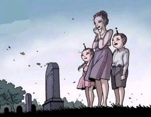 - Cut to the present: the “UFO” is still hovering. Inside, the mother (who has not aged a day because of alien time dilation or preservation) is forced to eternally wave and smile from a window while the aliens use her as a living propaganda display to lure more victims, showing humans a “happy reunited family.”
