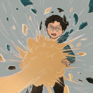 Every time they scream at each other, the red energy pierces the boy, leaving invisible scars that look like arrows stuck in his back and chest.