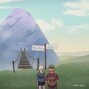 They reach a fork in the path: one sign says βMountain,β the other βSea.β They choose different directions and part ways.