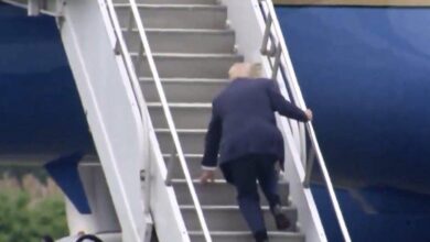 Donald Trump falls on the stairs while boarding Air Force One… see more…. Read full story in comment