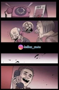 He was just another soul answering the eternal summons that clung to that house, a fate sealed long before he was born. The smiles on his parents’ faces weren’t of joy, but of relief. They had successfully passed on their burden. This comic is part of the “ccmh comics” series.